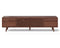 Tap into the mid-century modern vibe with this unique TV stand. Features solid acacia wood body and legs, and spacious storage units with slatted sliding doors that present a mosaic design when overlapped. Complete with cutout hole in the back panel for cables, it is a perfect choice for those with a mind for understated appeal.